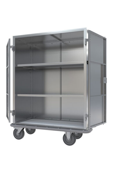 Le chariot-armoire en aluminium est la solution optimale pour les hôpitaux et les maisons de retraite. Il est utilisé depuis de nombreuses années pour stocker et transporter du linge sale et propre, du matériel stérilisé et bien plus encore.