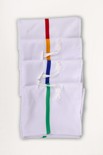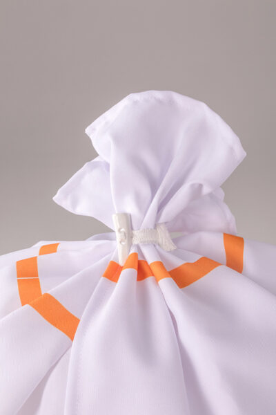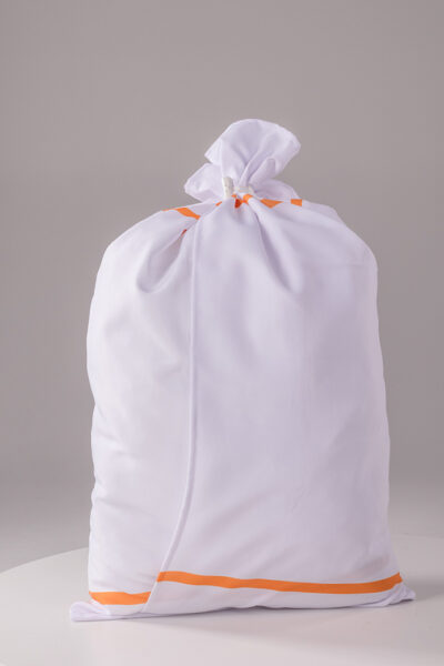 Le sac s’ouvre tout seul pendant le lavage après avoir retiré le loquet. Cette conception contribue à garantir la sécurité des travailleurs de la blanchisserie en éliminant le contact direct avec le linge sale. Le sac est lavé avec d’autres choses.