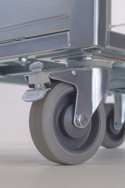 - Roues ø 125 mm (2 pcs – pivotantes avec frein, 2 pcs – fixes)