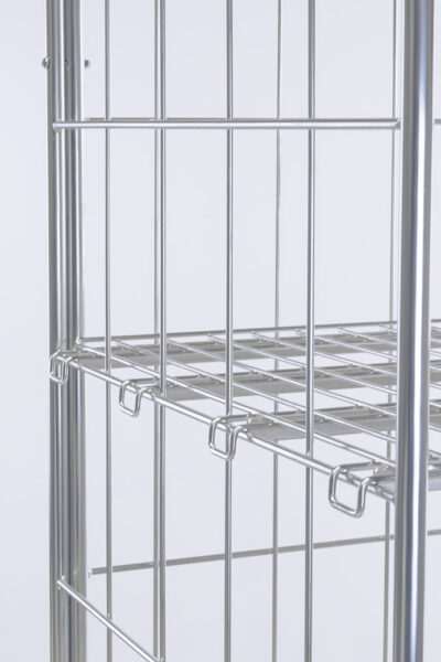 Présenté en version à deux ou trois parois il peut être équipé d'étagères amovibles.