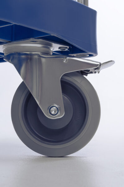 - Roues ø 125 mm (2 pcs – pivotantes avec frein, 2 pcs – fixes)