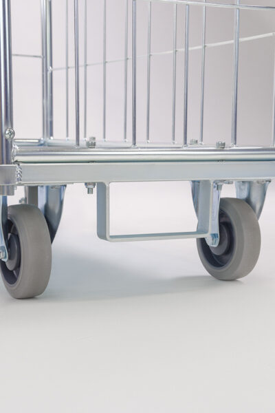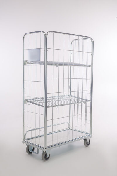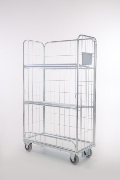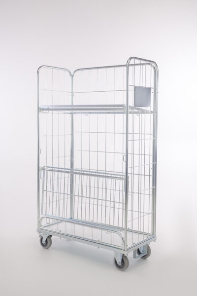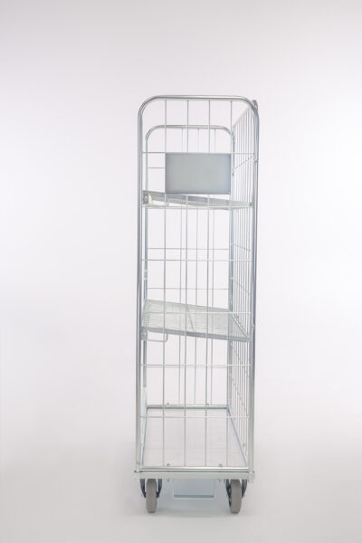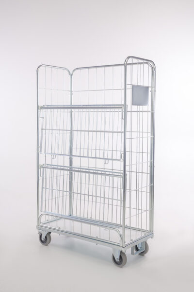 Les étagères fixes sont escamotables et peuvent être utilisées comme parois avant du roll. Le roll chariot est ainsi complètement fermé sur les quatre côtés.