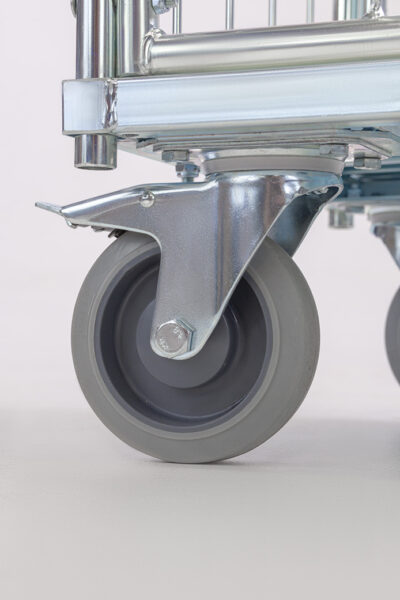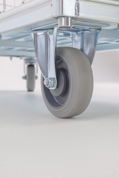 - Roues ø 125 mm (2 pcs – pivotantes avec frein, 2 pcs – fixes)