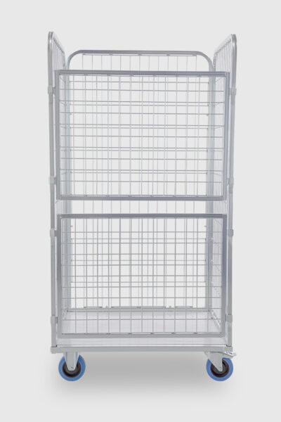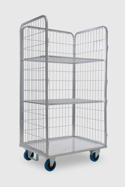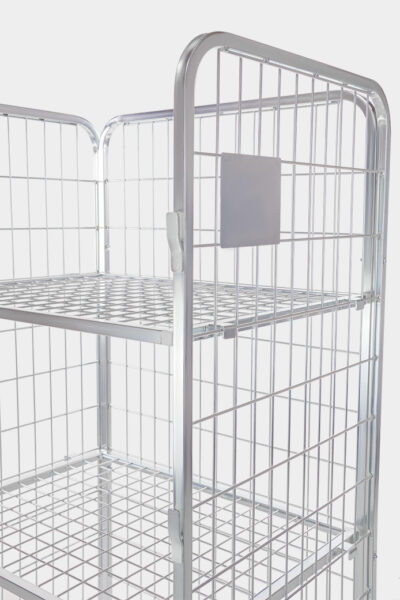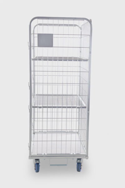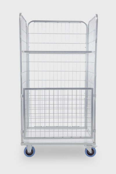 Le roll chariot est doté d'étagères horizontales amovibles qui peuvent être utilisées comme parois avant du roll. Le roll chariot est ainsi complètement fermé sur les quatre côtés.