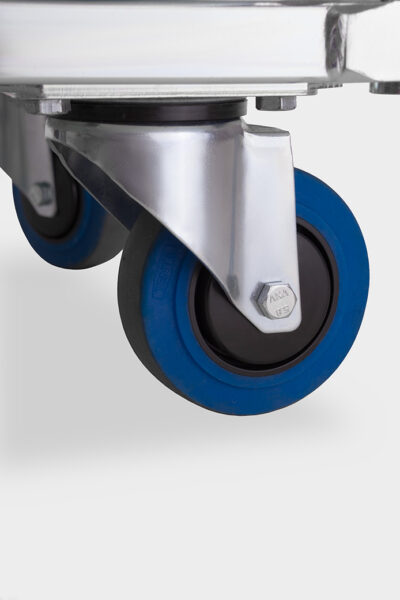 - Roues ø 125 mm (2 pcs – pivotantes avec frein, 2 pcs – fixes)
